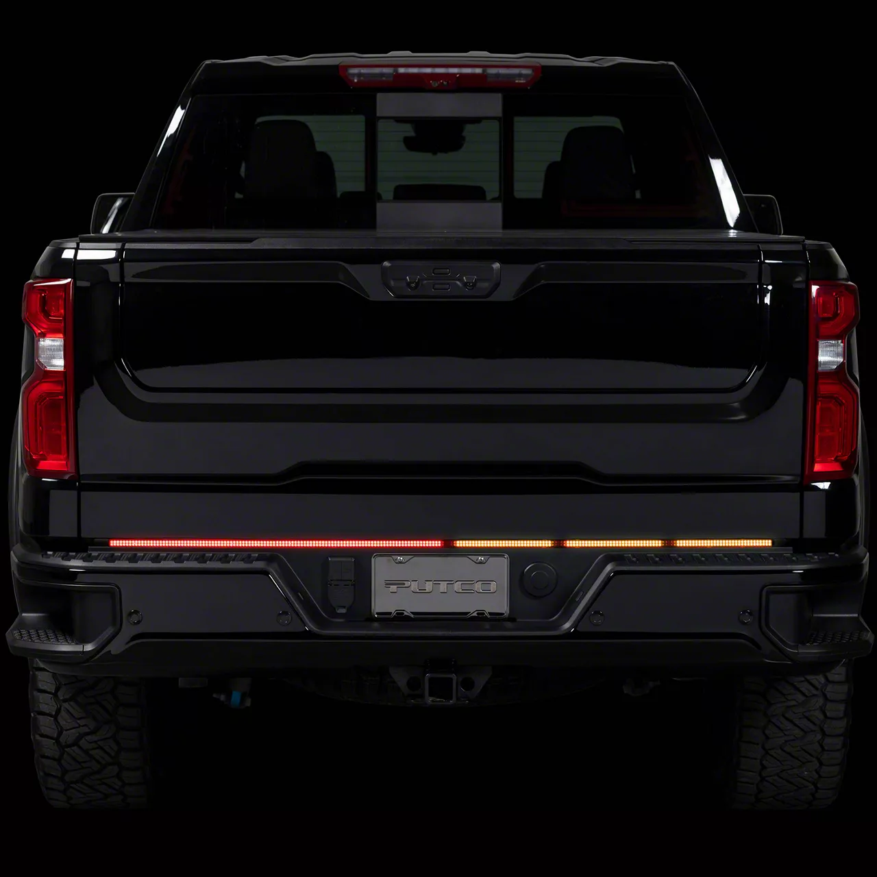 Feature-Loaded Light Bar. The Putco Freedom Blade LED Tailgate Light Bar (60-Inch) is a versatile and high-performance addition to your vehicle. With its impressive length of 60 inches, the light bar ensures maximum coverage for your tailgate area. It features a captivating start-up sequence that adds a stylish touch to your vehicle's appearance. The sync capability allows the light bar to seamlessly synchronize with your tail lights, giving your truck extra running, brake, reverse, hazard, and turn signal lights.
