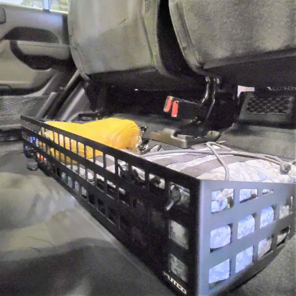 Durable and Corrosion-Resistant for Long-Term Use. Made from durable steel with a powder-coated black finish, this under-seat storage system is built to withstand the rigors of off-road use. It offers heavy-duty support for all your gear, making it perfect for Jeep owners who need additional storage without sacrificing space or convenience.