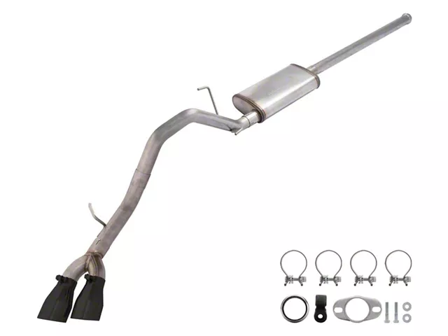 Dynamic Sound and Performance. Elevate your Tacoma's performance with the Pypes Street Pro Exhaust System, designed to deliver a powerful, aggressive medium loudness that complements the vehicle's capabilities. This system includes two matte black tips, stainless steel mufflers, and all necessary stainless steel clamps and hangers for a complete setup, ensuring a robust and enduring installation.