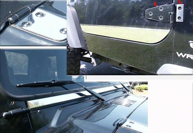 Aesthetic Upgrade and Protection. Enhance your Jeep Wrangler TJ and make it stand out in a crowd with this 6-Piece Stainless Steel Hinge Cap Package. Designed to enhance the small surface of your vehicle, this can be done in an instant. Durable and guaranteed to last, these are made from high-quality stainless steel with a 3M acrylic foam adhesive backing.