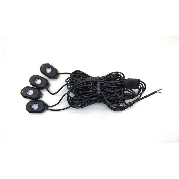 Description. Quake LED Led Rock lights Kit. Quake LED Rock Light Kits bring you light when you need it most. 13 feet of wire, 4 pods per kit