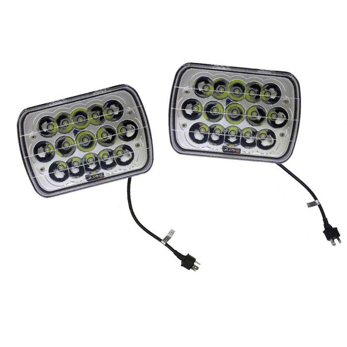 Classic Design. These Quake LED headlights feature a timeless rectangular design. They complement your Wrangler perfectly while providing phenomenal illumination. The polycarbonate lens is not prone to changing color over time, thus allowing the headlights to retain a brand-new appearance.