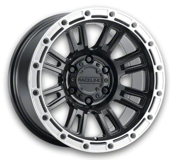 Raceline Compass Satin Black with Silver Ring 5-Lug Wheel; 18x9; 18mm Offset - This wheel's elegant design will certainly enhance your vehicle's aesthetic, complementing its luxury and performance. The unique styling of this wheel makes it an ideal choice for a standout quality of your ride, reflecting the premium quality associated with the Raceline brand.