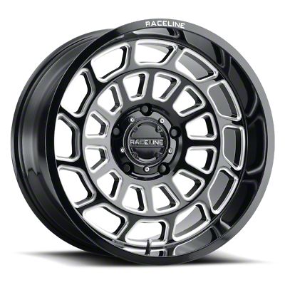 Raceline Warp Gloss Black Machined 6-Lug Wheel; 20x9; 18mm Offset - This wheel's elegant design will certainly enhance your vehicle's aesthetic, complementing its luxury and performance. The unique styling of this wheel makes it an ideal choice for a standout quality of your ride, reflecting the premium quality associated with the Raceline brand.