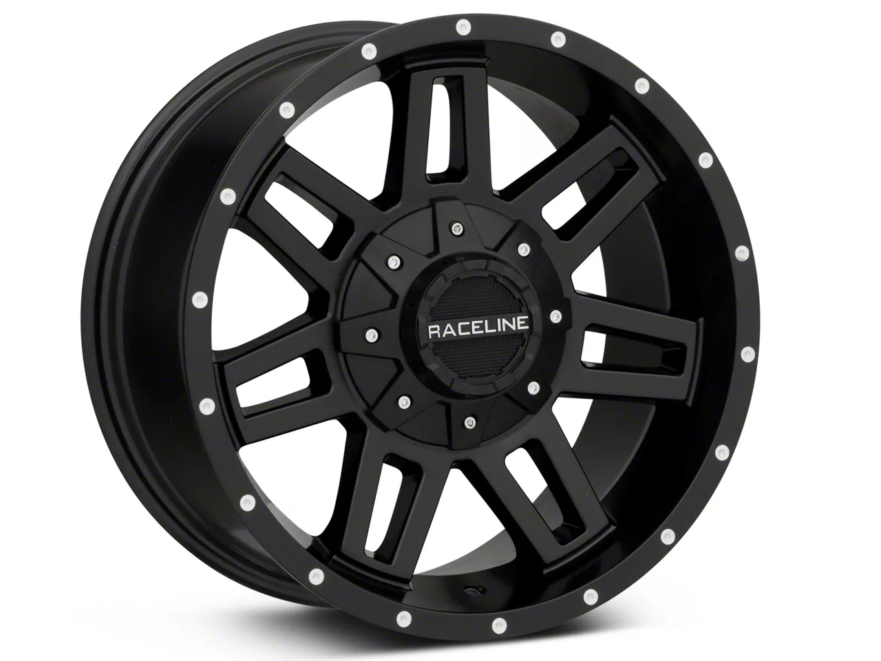 Raceline Injector Black Wheel; 20x9 - Experience the sleek elegance of the Raceline wheel. Its matte black finish adds a touch of sophistication to your vehicle, enhancing its overall appearance without compromising on durability. Perfect for a variety of vehicle styles, this wheel is a testament to the brand's commitment to quality and aesthetic excellence.