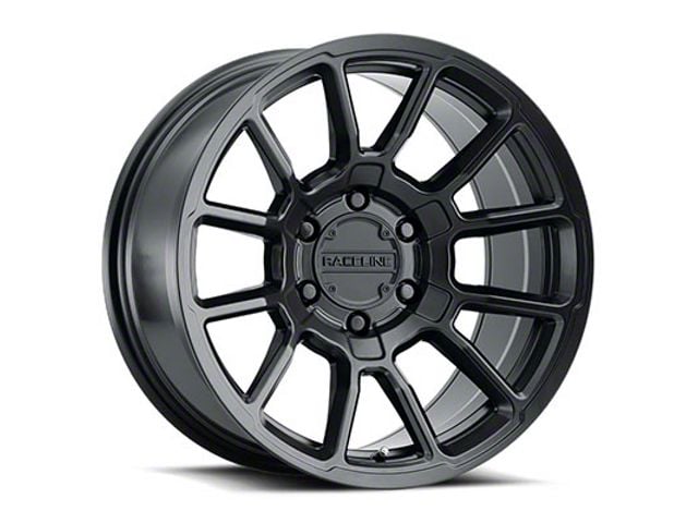 Raceline Gauge Satin Black 6-Lug Wheel; 18x9; -12mm Offset - Experience the sleek elegance of the Raceline wheel. Its matte black finish adds a touch of sophistication to your vehicle, enhancing its overall appearance without compromising on durability. Perfect for a variety of vehicle styles, this wheel is a testament to the brand's commitment to quality and aesthetic excellence.