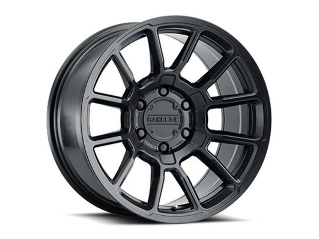 Raceline Gauge Satin Black 6-Lug Wheel; 20x9; 0mm Offset. Enhance your vehicle's look with the Raceline Gauge Satin Black 6-Lug Wheel. This premium wheel adds a touch of elegance and class to your vehicle, complementing its sophisticated aesthetic.