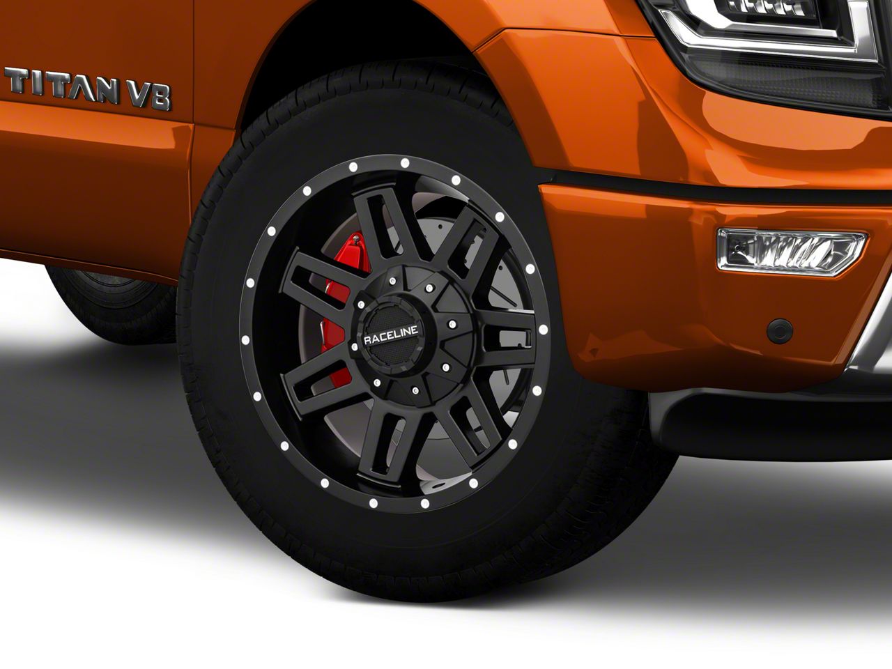 Application. This Raceline Injector Black 6-Lug Wheel; 20x9; 20mm Offset, with a backspace of 5.788 Inch, 147.1mm and bolt pattern of 6 x 139.7mm (6 x 5.5-Inch), ensures proper alignment and stability. It's designed to fit the 2017-2024 Titan models, enhancing both the look and the overall driving experience. Sold individually.