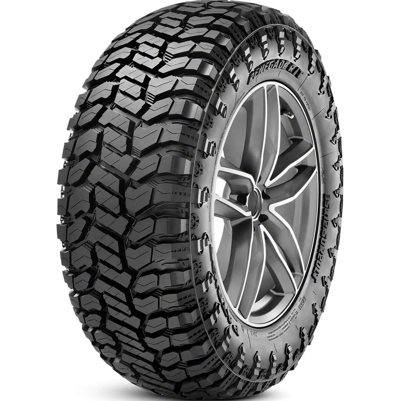 Renegade R/T. The Renegade R/T is the all-new rugged terrain range that is designed to give exceptional off-road performance coupled with on-road comfort and sophistication. On-road, this tire gives drivers superior handling with a quiet and smooth ride, while off-road it has the capability to go anywhere that a pure M/T tire can. All sizes come with a Dual Sidewall design and gives drivers a choice of either the mud penetrating sidewall with dagger shaped lugs or the flaming demon design with wedge-shaped lugs. These lugs offer added traction and sidewall protection.