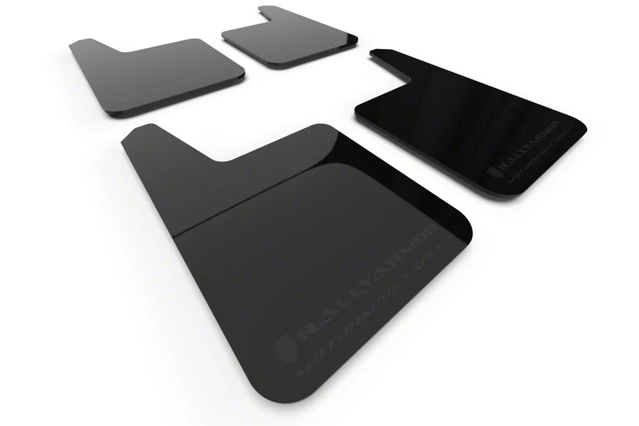 Application. The Rally Armor Universal MSpec Black Mud Flaps with Metallic Black Logo are suitable for various vehicle models and include both front and rear sets.