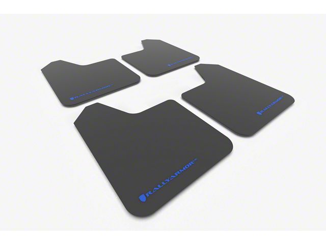 Universal UR Black Mud Flaps. The Rally Armor Universal UR Black Mud Flaps with Blue Logo provide excellent protection against errant road debris. These mud flaps are designed for both front and rear pairs, ensuring comprehensive coverage for your vehicle. They are particularly suitable for users looking to create their own mounting points, offering flexibility in installation.
