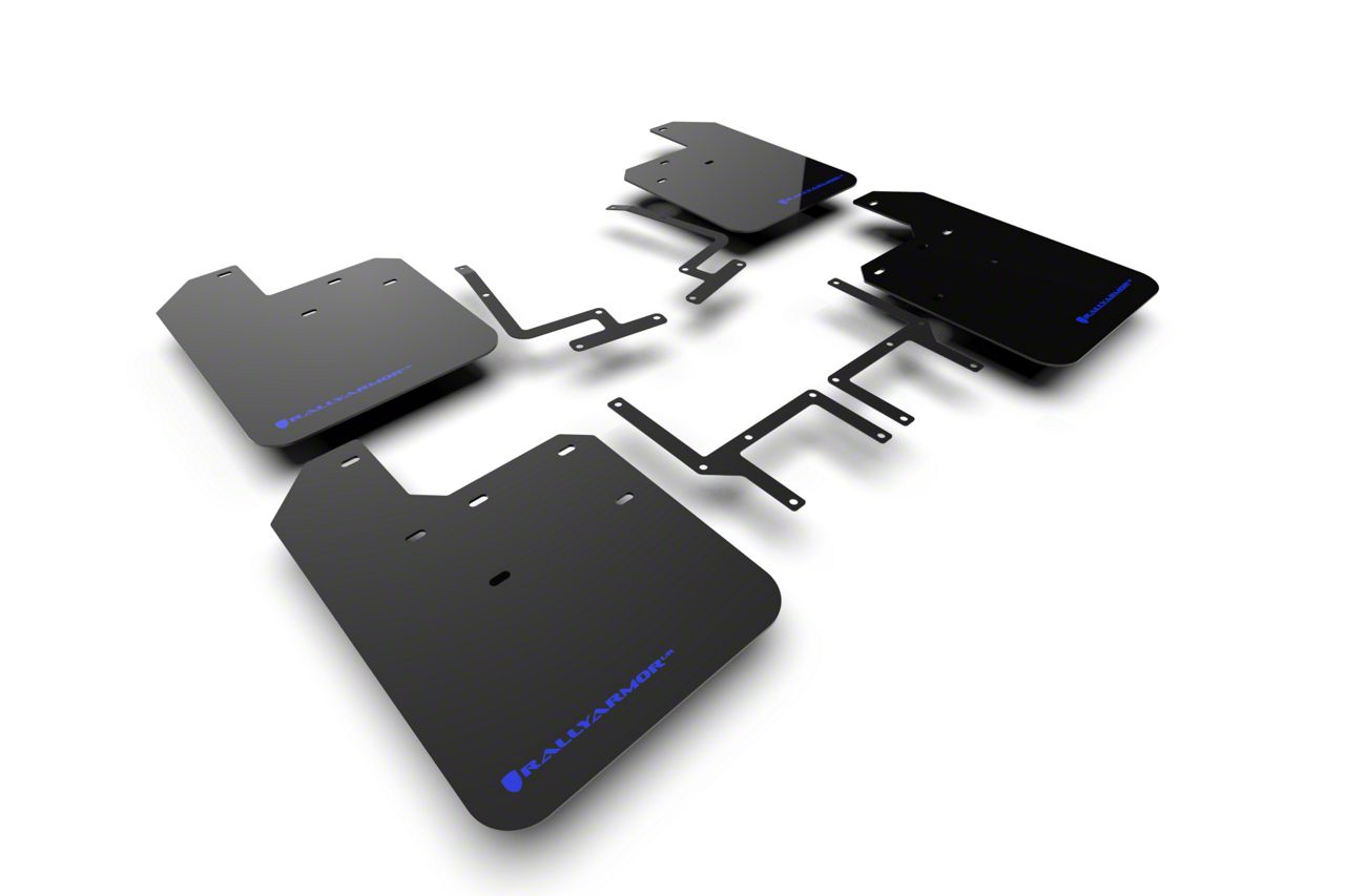 Rally Armor Black Mud Flaps with Blue Logo; Front and Rear (18-26 Jeep Wrangler JL, Excluding Rubicon 392)Find parts that fit my vehicle