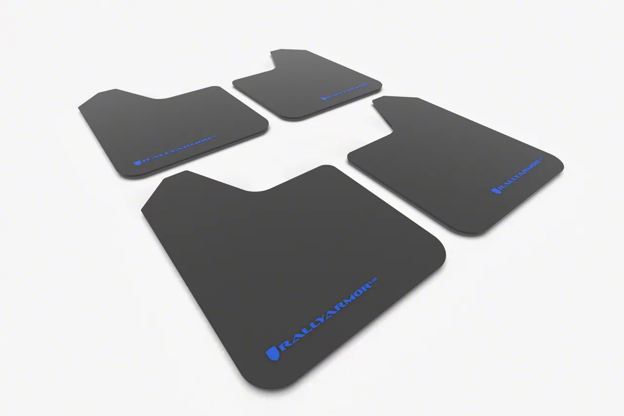Rally Armor Universal UR Black Mud Flaps with Blue Logo; Front and Rear (Universal; Some Adaptation May Be Required)
