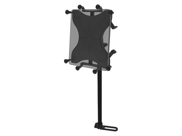 Description. The RAM-B-316-1-UN9 consists of the RAM POD I universal No-Drill vehicle base, 18” rigid aluminum rod, socket system and universal X-Grip clamping cradle for 10" tablets. The base of the mount connects to your seat rail without any drilling necessary. The 18" rigid aluminum rod can be bent to position your device to its optimum viewing location. The X-Grip clamping cradle consists of a composite spring loaded cradle, expandable grip arms and additional bottom support keeper. Included are extra easy access grip knobs, located on the back of the cradle for quick release of your tablet. The X-Grip clamping cradle expands and contracts for perfect fit of most 10" tablets with or without sleeves, as well as some smaller tablets. Please verify dimensions of your tablet below for compatibility with the X-Grip.