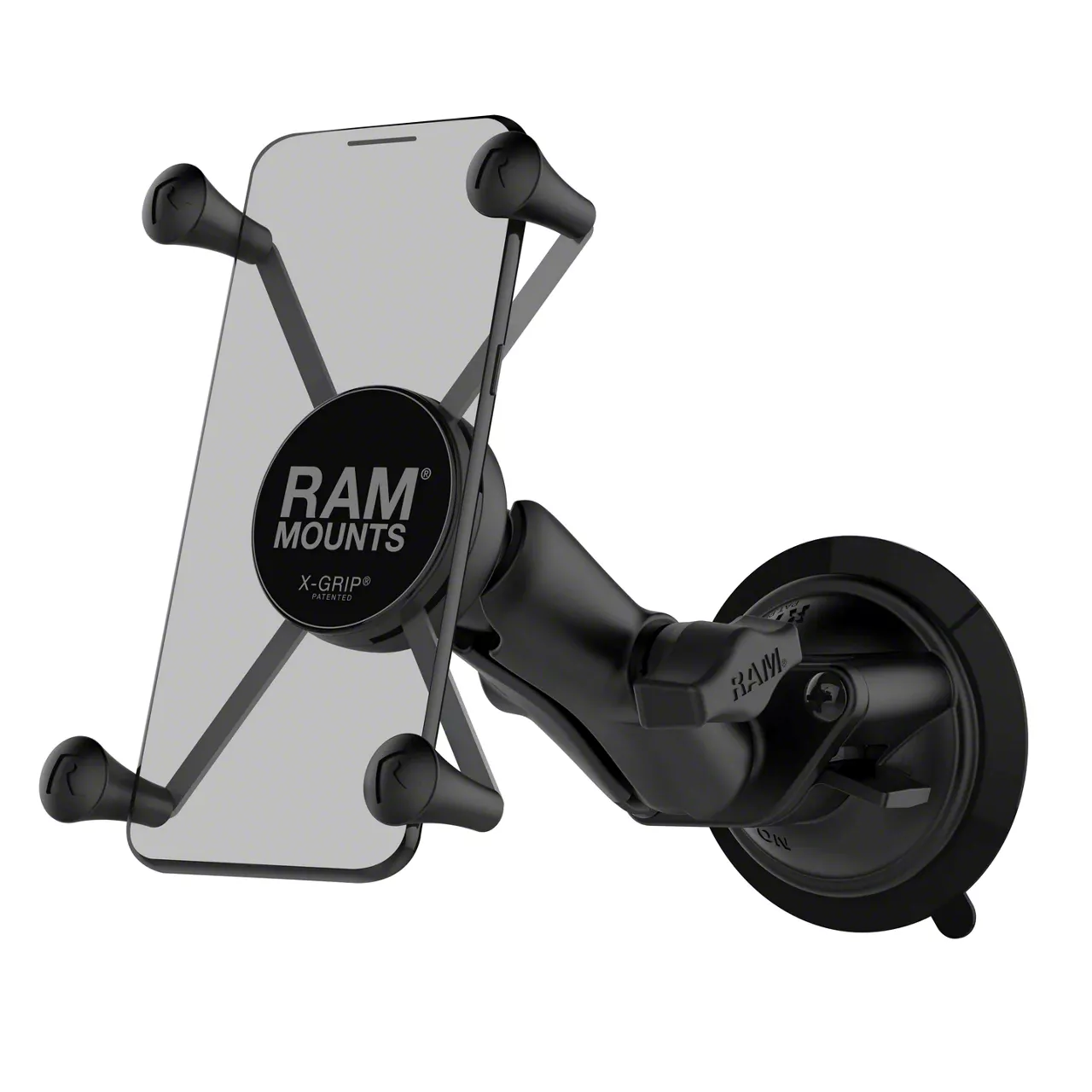 Versatile Mounting Solution. The Phone Mount features an innovative X-Grip Cradle and a spring-loaded design that securely holds your device in place during travel. Equipped with a twist-lock suction cup mount, this product ensures a strong and stable attachment to any smooth surface. The inclusion of a tether adds an extra layer of security for your mobile device.
