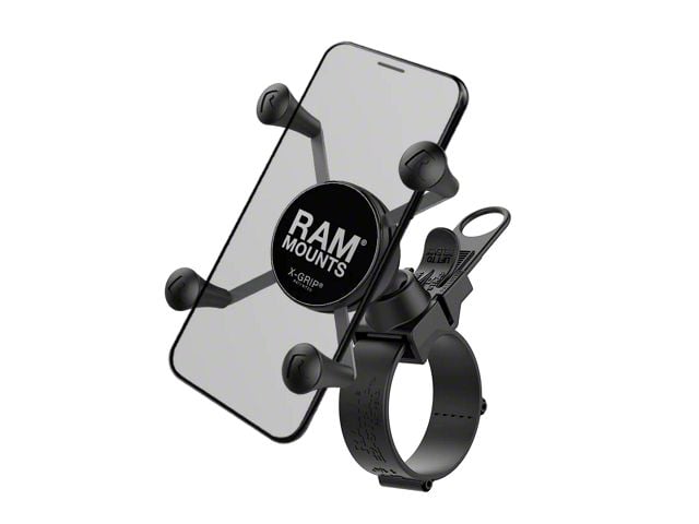 Description. The RAP-SB-187-UN7U consists of the RAM EZ-Strapâ„¢ base, double ball SHORT arm and universal X-Grip cradle. The strap can be cut to fit tubing, square rails and irregular shapes from 0.5" to 2.58" in diameter. Multiple adjustment points allow you to move the universal X-Grip cradle to your optimum viewing position. This mount rotates 180 degrees. The X-Grip includes a device tether recommended for outdoor applications. The cradle is compatible with handheld devices that will fit the dimensions listed below. It is important to verify the dimensions of your handheld device with a case/sleeve/skin when determining the overall size.