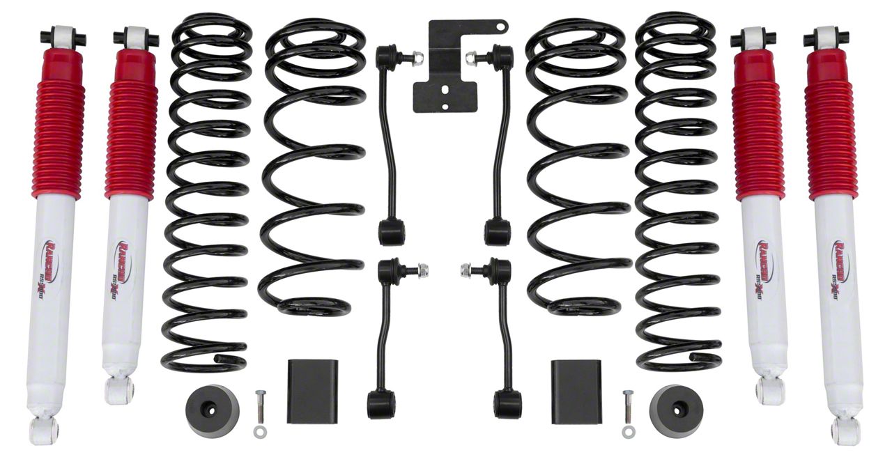 Better Off-Road Performance. For your next off-road drive, make sure that you gear your Jeep up first with this Rancho 2.50-3-Inch Sport Suspension Lift Kit with RS5000X Shocks. This suspension lift kit helps boost your Jeep’s off-road performance by increasing its ground clearance. The added 2.50-3-inch lift enables your vehicle to easily overcome obstacle-filled paths without its chassis getting damaged. Also, this suspension lift kit lets you experience greater driving comfort since it comes with the appropriate shocks and coil springs.