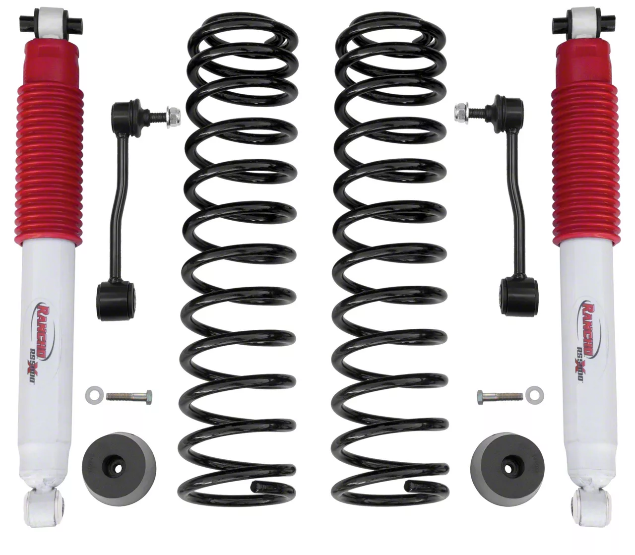 Reinforced Off-Roading Capabilities. Enhance your Jeep Gladiator’s handling performance by upgrading to this Rancho 1.50-Inch Front Level-IT System with RS5000X Shocks. This lift kit offers an improved stance and off-roading capacity that will allow your JT to navigate the rugged trails with comfort and control. It comes with RS5000X shocks, progressive rate coil springs, sway bar end links, and bump stop extensions that are all precision-engineered to be 100-percent compatible with the Jeep Factory Electronic Stability System.