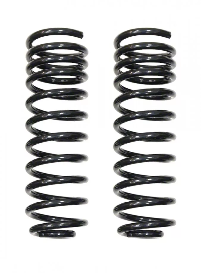 Durable and Black. These Front Lift Coil Springs boast high tensile strength and can deliver optimum performance without breaking, settling, or bowing. These springs are shot-peened and highly durable with their premium steel construction. Furthermore, these are reinforced by a black powder-coated finish to resist corrosion and chipping while adding a bolder look to your Jeep’s suspension system.