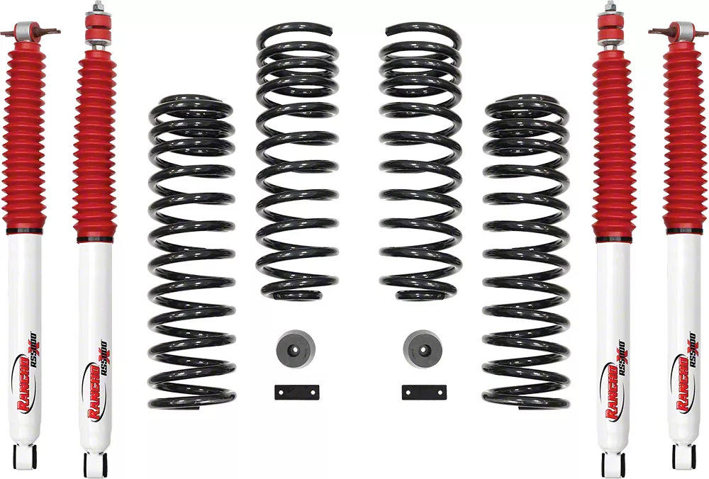 Bolder Off-Road Confidence. Give your Jeep Wrangler a rugged, off-road presence with customized comfort and optimum handling. Upgrading to this Rancho 2-Inch Sport Suspension Lift Kit with RS5000X Shocks enables your JK to scale through various obstacles with ease and confidence. With high-quality components, your vehicle will be leveled out for optimum stability, especially on rugged trails.