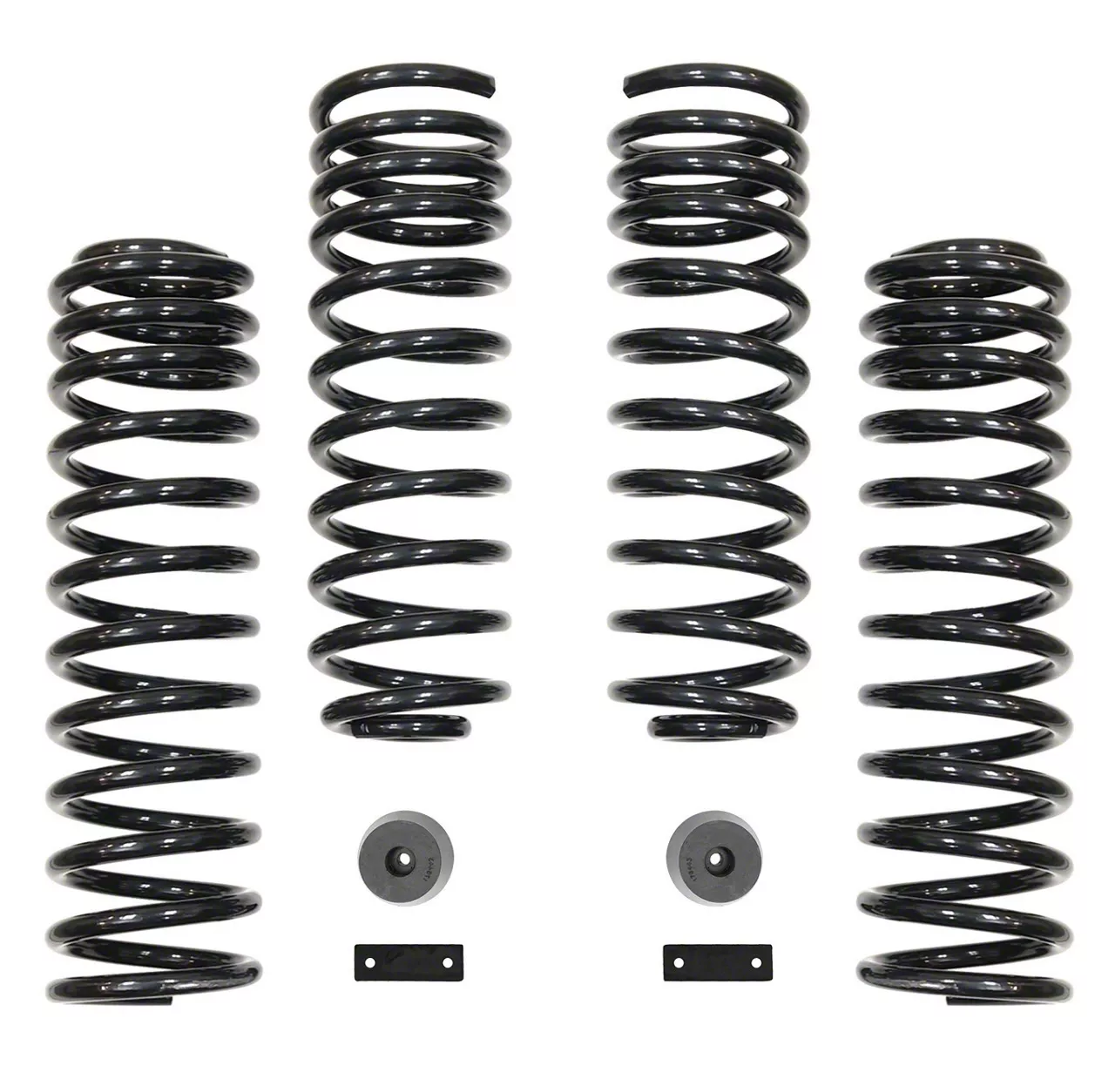 Made to Endure. As this Rancho 2-Inch Sport Suspension Lift Kit equips your Wrangler with a more progressive stance, it further guarantees top-of-the-range performance owing to its first-rate coil springs. It is engineered to fit up to 35-inch tires to get 2-inch extra height clearance for trail riding and on-road driving.