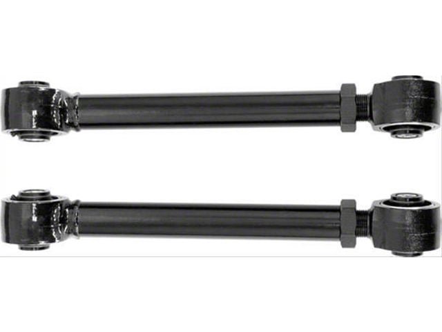 Performance and Durability. Boost your vehicle's rear suspension with the Rancho Adjustable Rear Upper Control Arms. This pair of control arms is designed to provide maximum flexibility and performance. With their adjustable design, they are compatible with stock height setups or can accommodate up to a 4-inch lift, ensuring your vehicle's ball joint stays in its normal operating range for optimal handling and durability. These control arms also offer increased wheel travel and caster adjustment, making it easier to achieve proper alignment.