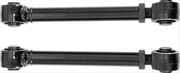 Performance and Durability. Boost your vehicle's rear suspension with the Rancho Adjustable Rear Upper Control Arms. This pair of control arms is designed to provide maximum flexibility and performance. With their adjustable design, they are compatible with stock height setups or can accommodate up to a 4-inch lift, ensuring your vehicle's ball joint stays in its normal operating range for optimal handling and durability. These control arms also offer increased wheel travel and caster adjustment, making it easier to achieve proper alignment.