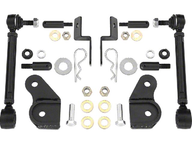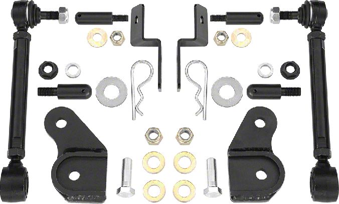 Conquer Difficult and Challenging Trails. These Rancho Front Sway Bar Disconnects for 0 to 6-Inch Lift are designed to allow your Jeep Wrangler to fully articulate, as it overcomes steep obstacles and hazards. When cruising down the highway and paved roads, you can connect the sway bar end link to eliminate the risk of rollovers. On the trails, you can unleash your Jeep and take full advantage of its capabilities by simply disconnecting the links and securing them out of the way with the included relocation brackets. Going from a daily driver to an off-roader has never been this easy.