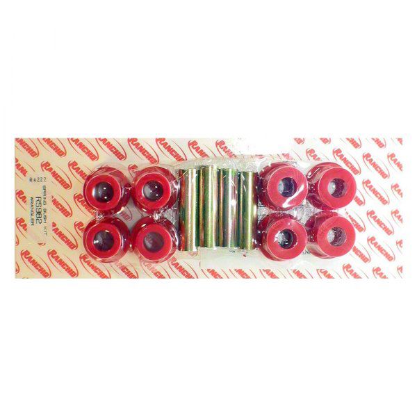 Durable Bushing Kit. The Rancho Leaf Spring Bushing Kit provides essential replacement bushings for both front and rear applications on your vehicle. These high-quality parts are designed to offer a long service life, ensuring your suspension remains in top condition.
