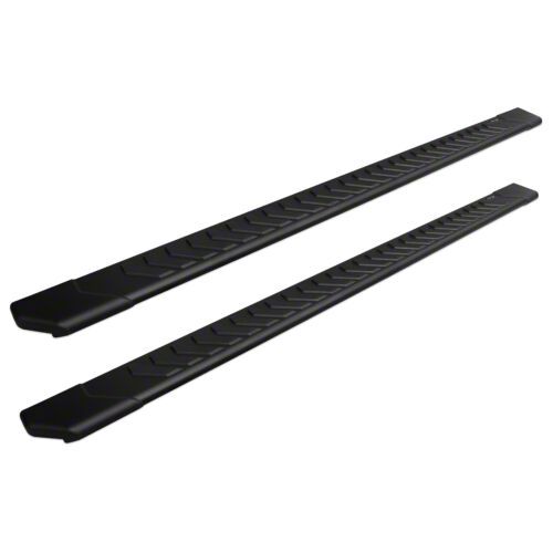 Construction and Appearance. These running boards are not only functional but also aesthetically pleasing with unique angled end caps and a sleek finish. The heavy-duty brackets and custom slide track system ensure a secure fit and durability. The design of the running boards incorporates a custom slide track system, allowing for adjustable placement to suit various user preferences and installation needs.