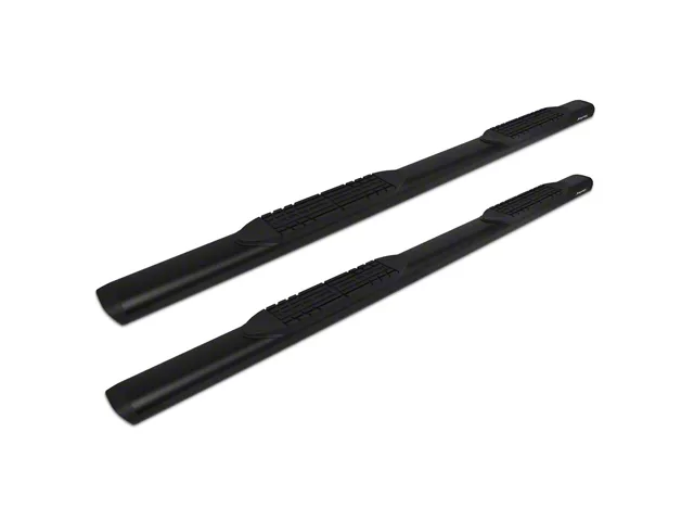 Construction and Appearance. Featuring a durable textured black finish, these running boards are built with a 5-inch wide oval-style profile and equipped with slip-resistant step pads to ensure secure footing in all weather conditions. The robust design enhances your truck’s rugged appearance while maintaining a sleek, integrated look along the rocker panels.