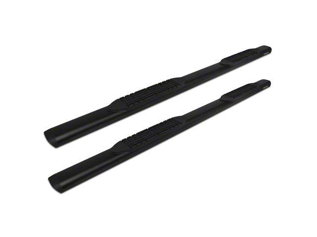 Formidable Running Boards. Fortify your truck with these Black Textured Raptor Series 5-Inch Slide Track Oval Running Boards. These running boards do more than just enhance your vehicle’s rugged look. They also provide a safer way for you to step in and out of your truck with their wide stepping areas and ridged saddle-type step pads. Also, these running boards’ robust construction protects your truck against lower-body damage caused by road hazard impacts and blows so you can fearlessly conquer the roads no matter how rugged the conditions may get.