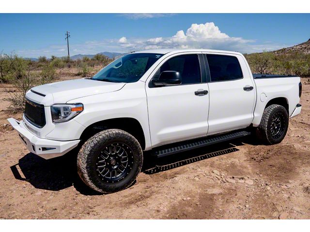 Upgrade that Lasts. Upgrade the function and appearance of your Tundra. Check out the Raptor Series 6.50-Inch Sawtooth Slide Track Running Boards. Made from Superior materials, these boards are built to last and can take whatever you throw at them. With a wide step area of 6.50 inches, you'll have plenty of space to get in and out of your truck with ease.