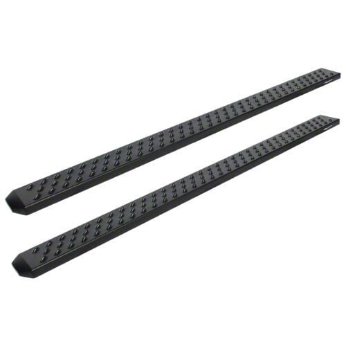 Convenient. These Raptor Series 6.50-Inch Sawtooth Slide Track Running Boards offer more than just improved vehicle entry and exit; they also make accessing the truck bed much easier. Providing a sturdy, secure step-up, the boards facilitate the process of loading and unloading heavy or bulky items. This feature is invaluable for those who regularly use their vehicle for transporting goods, tools, or outdoor equipment, as it reduces the physical effort involved in lifting items into the bed. The stable platform ensures safety, minimizing the risk of slips or falls while managing cargo, thus enhancing both convenience and safety.
