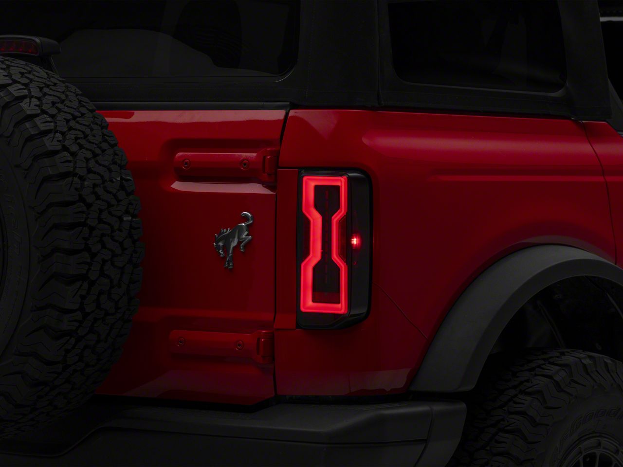 Application. These Raxiom Axial Series LED Tail Lights; Black Housing; Smoked Lens are designed to fit 2021-2026 Ford Bronco models equipped with Factory Halogen Tail Lights. Sold as a pair, driver and passenger side lights are included.