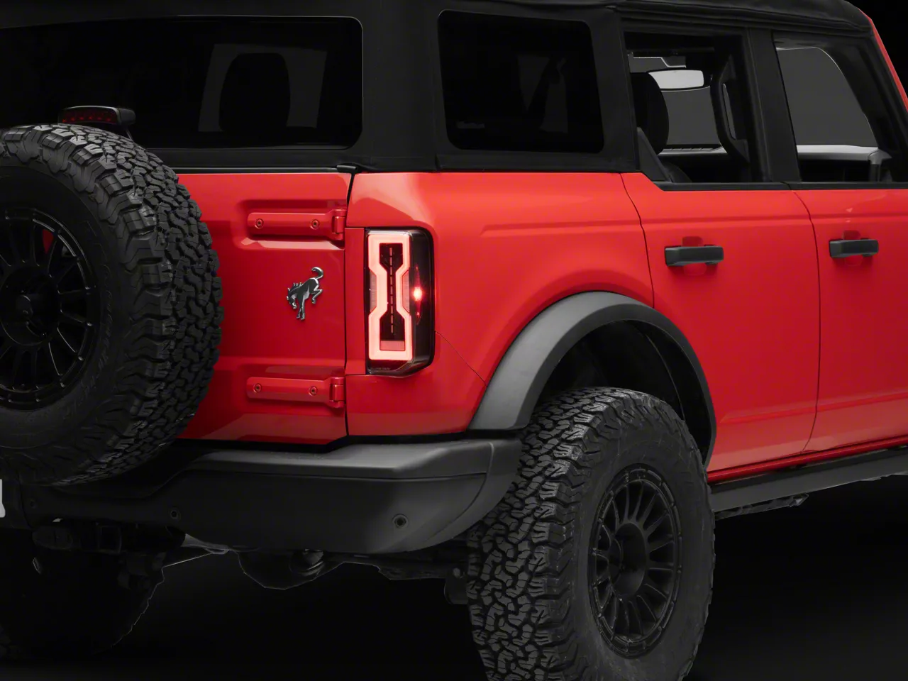 Updated Styling. Add an updated appearance to your 2021-2026 Ford Bronco with a pair of Raxiom LDS LED Tail Lights. Featuring black housings with clear lenses, these LED Tail Lights will make an impactful visual statement. Whether your Bronco is your daily driver or your weekend toy, these Raxiom LDS LED Tail Lights will be sure to set your Ford apart from all the rest.