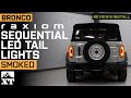 Application. These Raxiom LED Sequential Tail Lights; Black Housing; Clear/Smoked Lens are designed to fit 2021-2026 Ford Bronco models equipped with factory halogen tail lights. Driver and passenger side included.