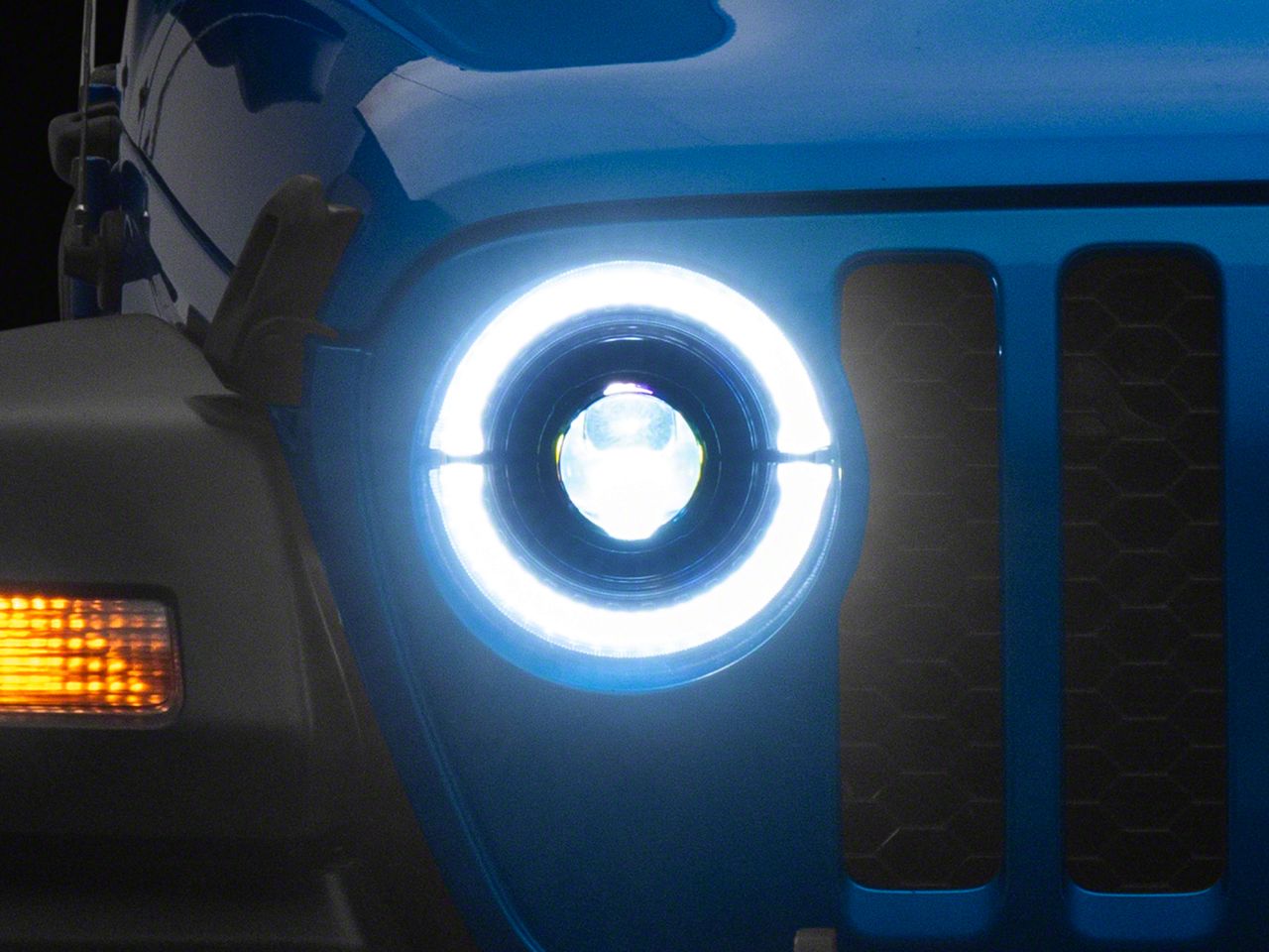 Application. These Raxiom High Output LED Headlights with Angel Eye DRL; Black Housing; Clear Lens are designed to fit 2020-2026 Jeep Gladiator JT models. Driver and passenger side lights are included.