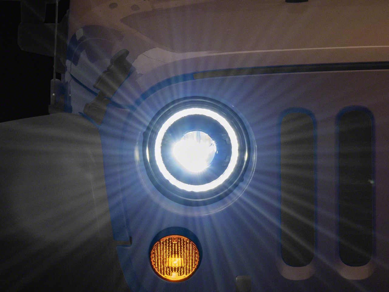 Modern LED Styling. A pair of Raxiom 7-Inch V2 Dragon Eye LED Headlights are an excellent way to add an updated modern appearance to your 2007-2018 Jeep Wrangler JK, all while improving your nighttime visibility. With an impressive integrated turn signal / Daytime Running Light (DRL) design, these V2 Dragon Eye LED Headlights will give your Wrangler a whole new look.
