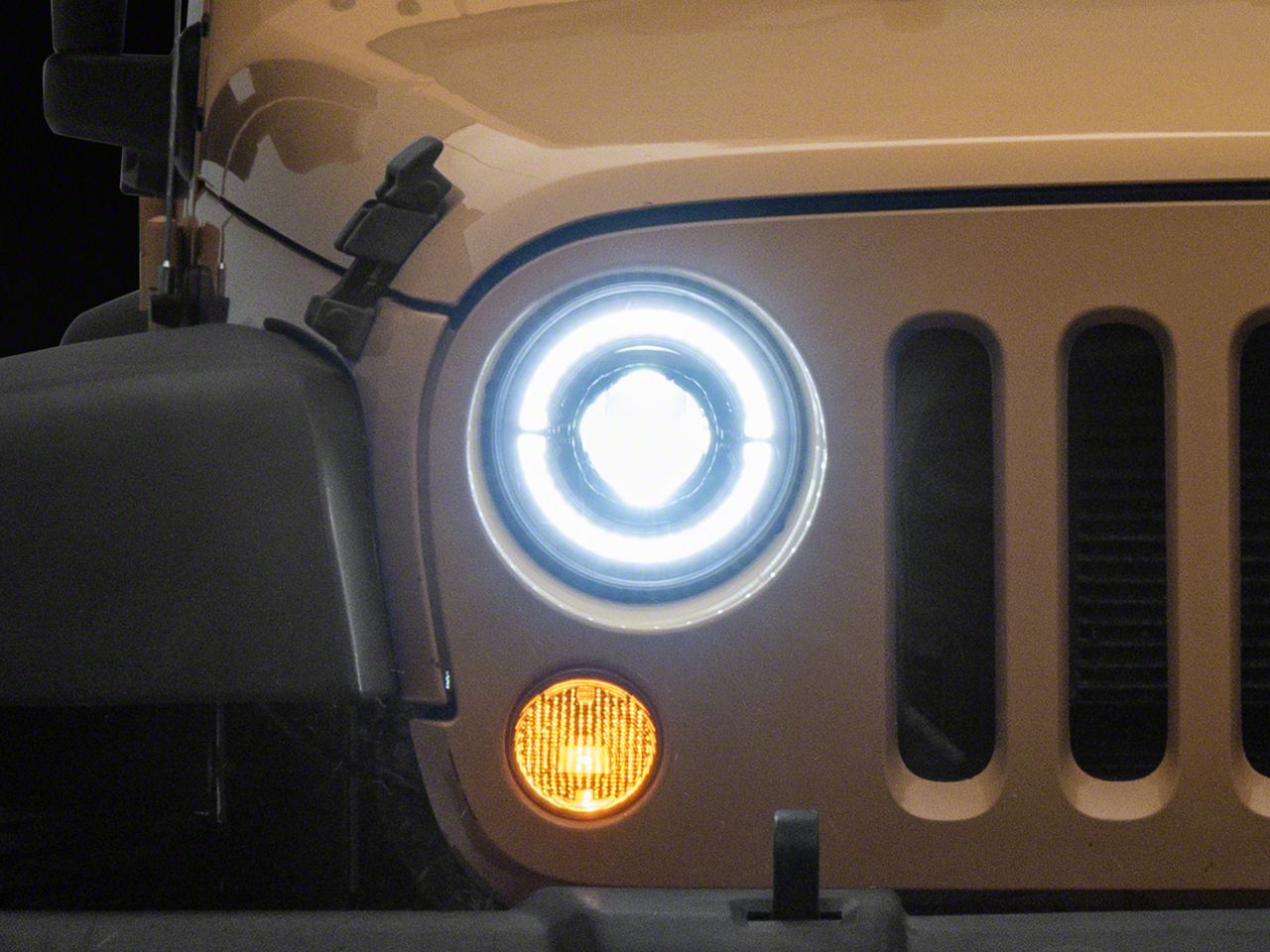 High Output LED Lighting. Raxiom's High Output LED Headlights are an excellent way to updated the appearance of your 2007-2018 Jeep Wrangler JK, all while improving your nighttime visibility. With an impressive integrated halo amber turn signal and white Daytime Running Light (DRL) design, these Headlights will give your Wrangler a whole new look.