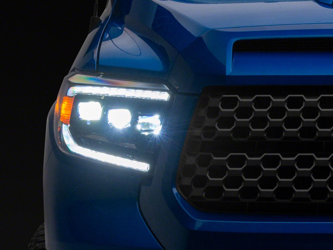 Modern CXR Series Styling. These Raxiom CXR Series LED Headlights are the ideal aftermarket headlight upgrade that offers unparalleled performance, and good looks. Using LED bulbs, these Headlights will not only update the appearance of your Tundra's front end, but they will also easily outperform the factory lights, providing you with more intense illumination, for safer nighttime driving.