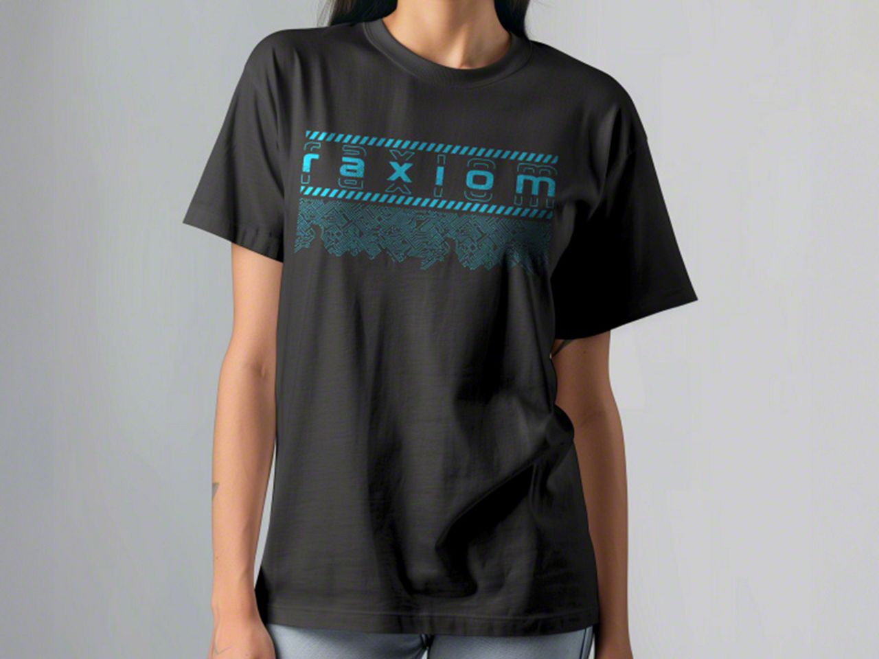 Raxiom Circuit. A Raxiom Circuit T-Shirt shows your pride in the brand. The black T-shirt has the very cool "raxiom" design in blue across the center. It's an impressive fashion statement that shows dedication in the Raxiom way.