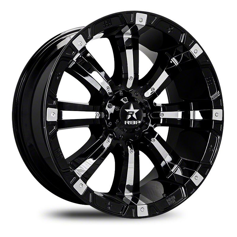 Gloss Black Finish With Chrome Accents. This RBP Wheel is completed in a high quality black hue with chrome insert accents for a powerful presentation that everyone will be envious of. This Wheel features a durable, clear coated finish that is tough enough to stand up against the hazards of everyday driving - including road chips and pitting.