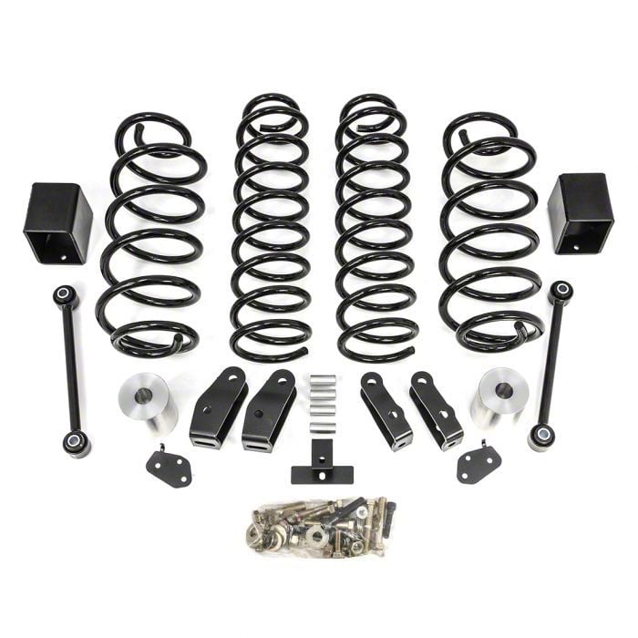 Coil Springs and Sway Bar End Links. These ReadyLIFT Coil Springs are engineered to provide your Jeep with the needed lift and compression to scale various obstacles. This set works perfectly well with the stock shocks to compress and rebound in supporting the suspension. As such, these hot-wound coil springs exhibit high flexibility and durability. They are covered in a heavy-duty black powder coated finish for optimum corrosion resistance. In addition, this coil spring lift kit also comes with rear sway bar end links to reinforce your suspension and prevent Jeep body from tipping or leaning as it turns.