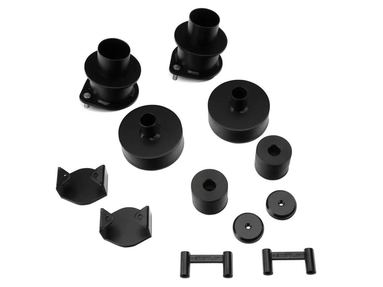 Kit Contents. The ReadyLIFT SST 3-inch Front and 2-inch Rear Lift Kit includes front and rear coil spacers, front and rear shock extensions, front and rear bumper stops, front track bar bracket and cam bolts.
