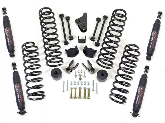 Increased Ground Clearance. The ReadyLIFT 4 inch Coil Spring Lift Kit with SST3000 Shocks ensures enhanced off-road performance in your Jeep Wrangler JK. It effectively increases ground clearance. This lift kit was designed to provide a safe vehicle lift. You’ll be able to drive your Jeep on all types of terrain without giving up ride quality and dynamic vehicle performance.