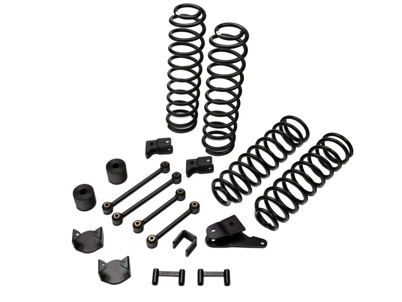 Kit Contents. This SST coil kit includes front and rear coil springs, front and rear shock extension brackets, front and rear extended sway bar links, a rear track bar bracket, bump stops and bump stop pads. Some 2012-2018 Wrangler may require the use of an additional exhaust spacer kit (sold separately) to complete installation.