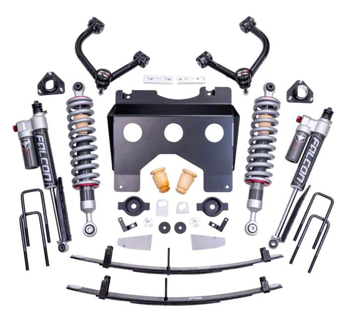 Construction and Appearance. This kit includes heavy-duty, precision-engineered components built to last, along with Falcon 2.1 monotube shocks and struts that deliver superior damping and control. All parts are designed to handle tough terrain while preserving on-road comfort and stability.