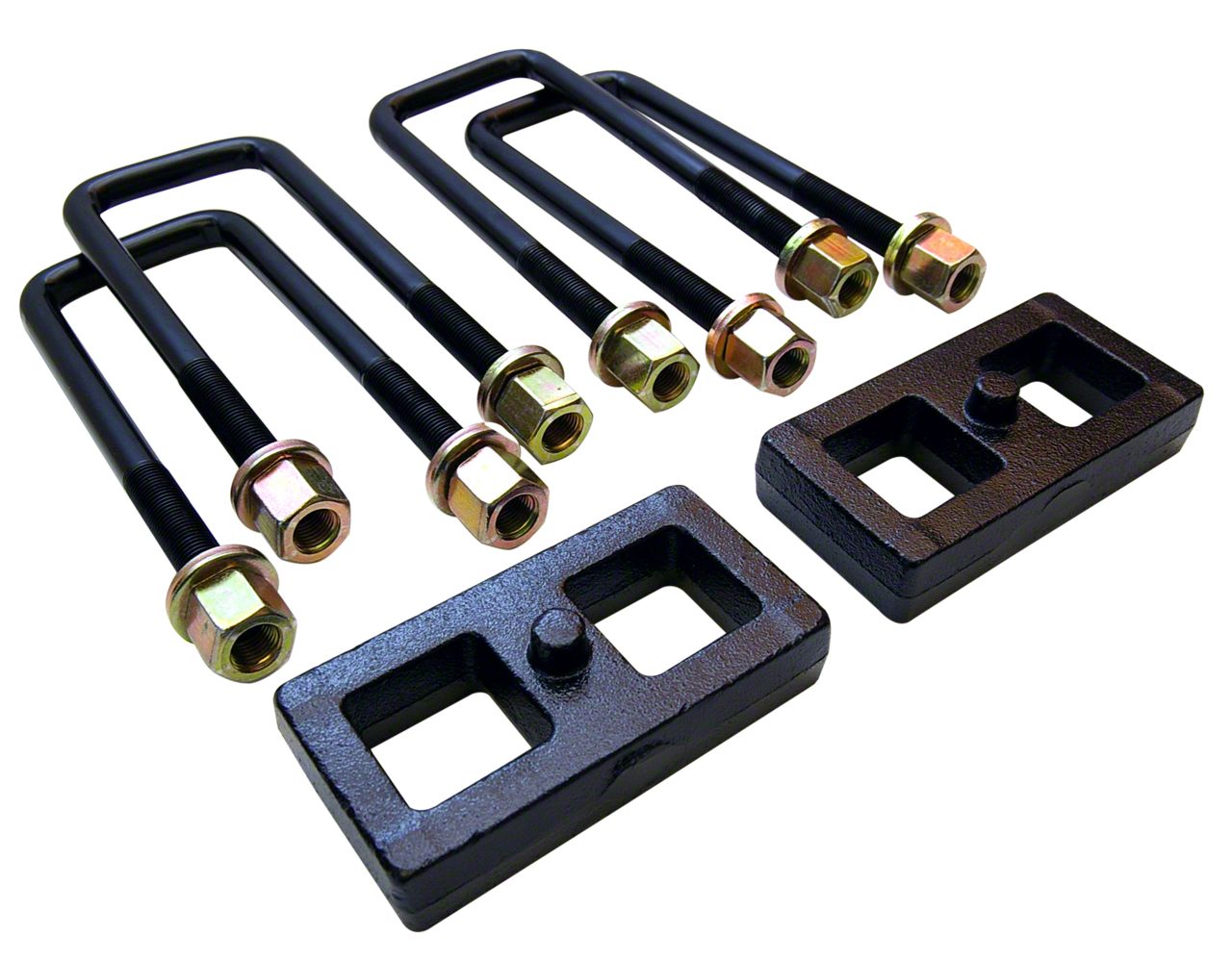 High-Quality Construction. This Rear Lift Kit features a pair of OEM-style, 1-inch lift blocks that are made of high-strength cast-iron. These blocks are fortified with an e-coating for an added layer of protection against corrosion, abrasion, and chipping. Moreover, each block is furnished with a slight pinion angle built-in pins designed for strength and stability.