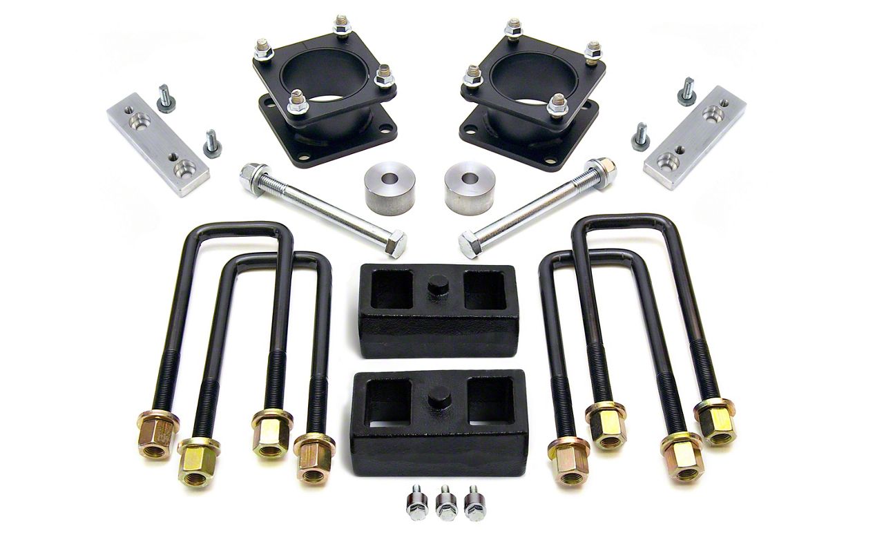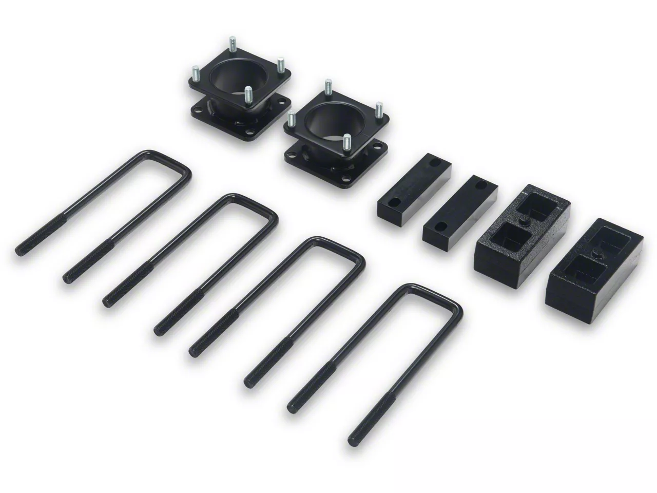 Long-Lasting Functionality. This Lift System is composed of precision-machined upper strut extensions designed to position the strut in the same mounting angle position. The differential drop brackets lower the differential on 4WD models to maintain proper alignment. Additionally, the rear lift is achieved with vehicle-specific rear blocks that allow the removal of the stock blocks. These suspension lift blocks and U-bolts raise your vehicle’s rear to maintain the level stance while clearing your larger tires. These components are made from top-quality materials and were engineered with exact configurations for precise fitment.
